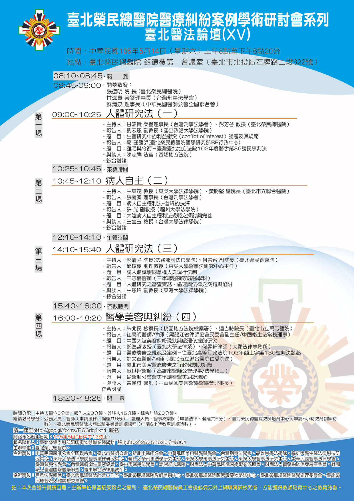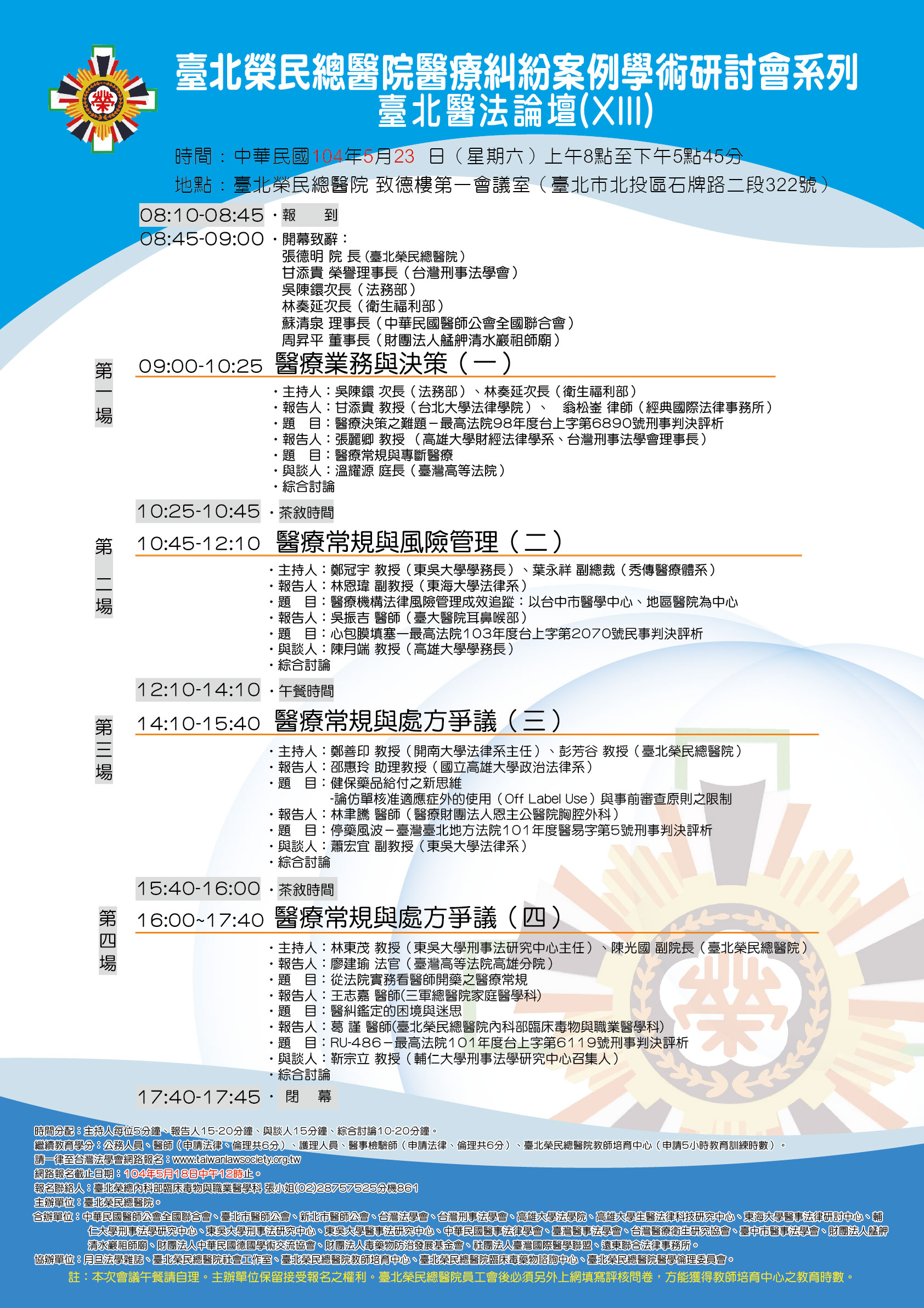 台北榮民總醫院醫療糾紛案例學術研討會系列-第19次台北醫法論壇(XIX) |