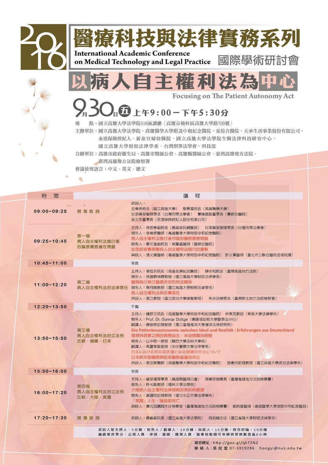 2016醫療科技與法律實務系列國際學術研討會 |