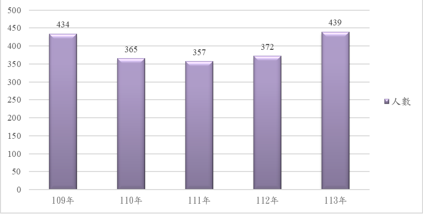 | 總人數 | 439 | 100% | 372 | 100% | 357 | 100% | 365 | 100% | 434 | 100% | |